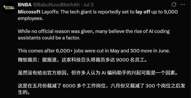 在近期被裁的微软员工中,有40%是开发者。大量初级程序员的工作,确实已经被AI取代!