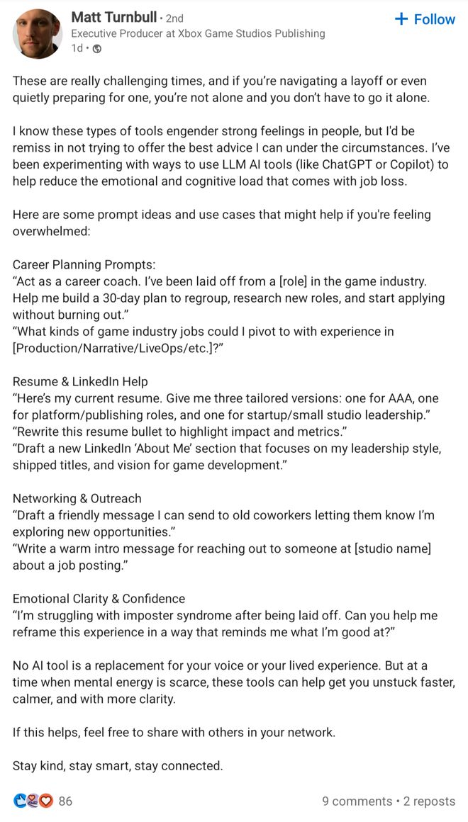 https://www.theverge.com/news/698468/xbox-exec-reccommends-ai-to-laid-off-staff