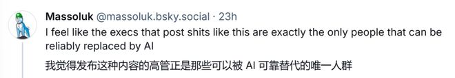 还有人一针见血地指出:发布这种内容的高管,才是最该被AI替代的人吧。