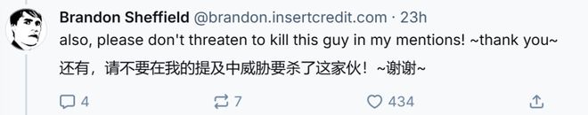 他不得不强调:请不要在我这里发出死亡威胁,谢谢大家!