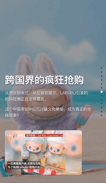 比如在【跨国界疯狂抢购】中,放出了欧洲、东南亚等地消费者排队抢购LABUBU的盛况,让大家直观感受这个IP的火爆程度。这种视觉化的呈现,就像刷短视频一样,在一屏一屏下滑中,不由得就看完了。