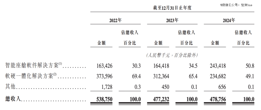 四维智联的收入主要来自两大块:智能座舱软件解决方案和软硬一体化解决方案。通俗地说,前者提供的是智能座舱的“灵魂”——比如导航地图、AI助手等功能软件;后者则是“灵魂”加上“身体”——主要是整合了软件的智能座舱核心硬件(如域控制器)及各种配件(如显示屏、麦克风等)。