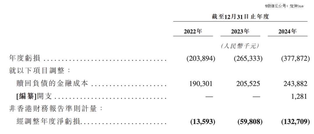 即使剔除上市前融资的特殊会计准则影响,反映真实经营状况的经调整净亏损,也从2022年的1359万元,扩大至2024年的1.33亿元,三年间涨了超十倍。