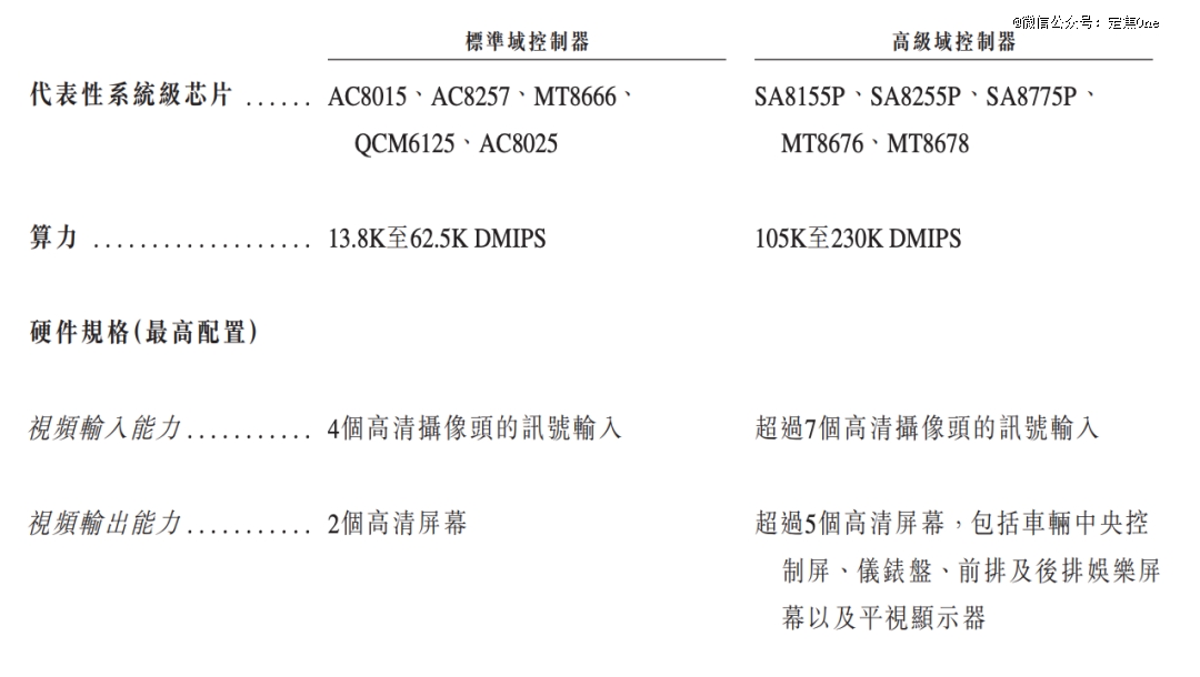 低端芯片(标准域控制器所需的芯片)依赖股东四维图新旗下杰发科技(AC、QC系列芯片);高端方案(舱泊一体、驾舱一体解决方案)则依赖高通和联发科(SA8155P、MT8676等系列芯片)。