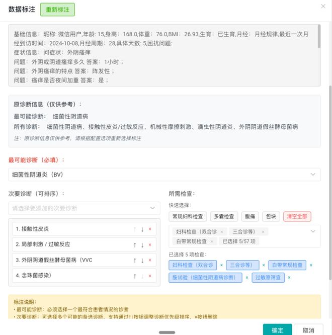 人工标注环节:由内部的专业医学专家团队,依据现行医学行业标准,对症状数据实施规范化标注作业,构建标准化诊断结果集,为后续流程奠定基准参照体系。