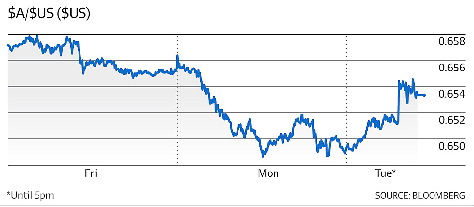 澳元兑美元汇率一度下跌1%,跌至64.86美分的低点。