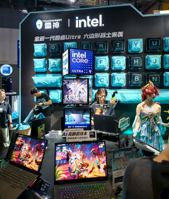 英特尔在BW2025开幕前一天,在上海正式发布“AI高静游戏本”新概念,此次各个合作品牌也将他们基于这个概念设计的产品带到了BW2025,这也是AI高静游戏本的首次公开亮相。比如雷神就展示了多款基于酷睿Ultra200系列打造的新一代游戏本,包括近期热门的猎刃系列等。