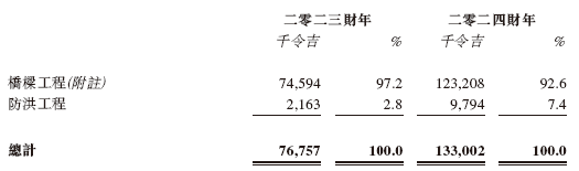 于往绩记录期间,BBSB的所有收入均来自向交通基础建设工程项目提供桥梁工程服务以及向防洪项目提供其他土木工程服务。