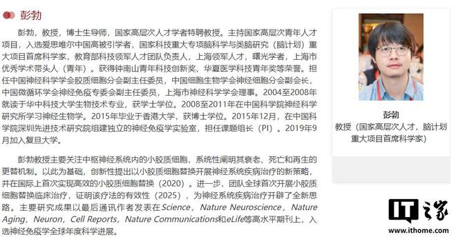 IT之家 7 月 13 日消息,复旦大学上海医学院彭勃、饶艳霞团队与上海交通大学曹立团队(兼上海市第六人民医院团队)合作。