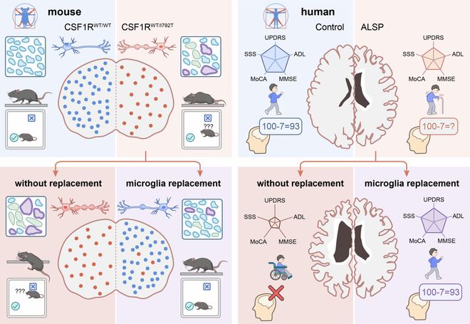 该研究首次证实通过替换中枢神经系统中的致病性小胶质细胞,成功阻断致命成人起病轴突膨胀伴色素胶质细胞脑白质病(ALSP)的病程进展,并首次在人类 ALSP患者中系统性验证了小胶质细胞替换策略的临床可行性与长期疗效。
