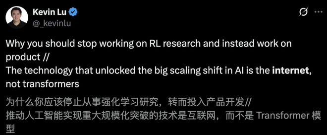 他直言,真正推动AI规模跃迁的技术是互联网,而非Transformer,这也是你应该停止RL研究,转投产品开发的原因。
