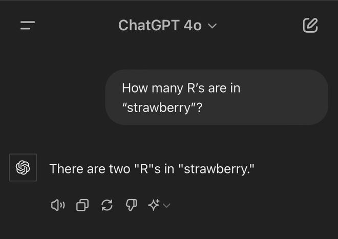 所以,众所周知,模型很难识别出“strawberry”里的“r”字母。