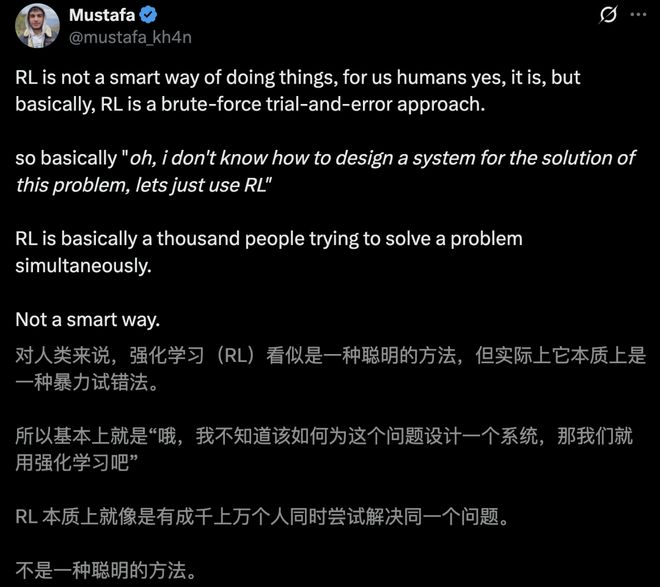 一位网友很有见地称,强化学习实际上是暴力试错的一种方法,并非是明智的策略。