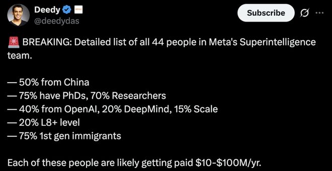 一张Meta“超级智能实验室”成员名单图,全网传疯了!
