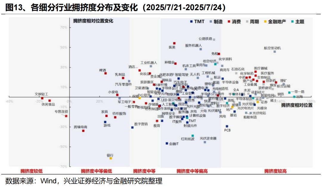 经历7月以来的情绪消化之后,当前军工板块拥挤度已回落至中等水平,是成长主线中位置合适、值得配置的细分领域,在7-8月的高胜率窗口下有望继续反映阅兵催化+ “五年计划”、全球军贸市场打开长逻辑。