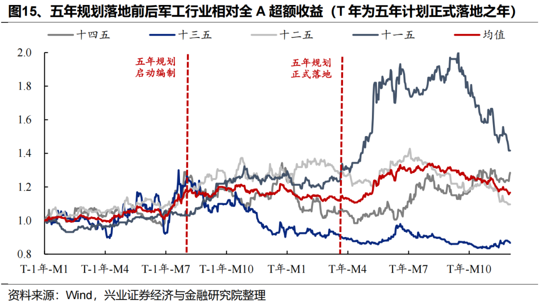 对内,军工作为强计划性行业,五年规划对于行业景气和市场预期有着重要影响。参考历史经验,从五年规划启动编制,到正式落地的第一年,军工行业的超额收益通常较为明显。今年作为“十四五”收官之年,同时是“十五五”筹备之年,随着军队建设“十四五”规划执行已进入能力集成交付关键期、叠加 “十五五”规划编制推进、落地,行业未来三到五年的发展指引将逐渐清晰,前期积压的下游需求有望迎来大幅释放。随着新一轮订单周期开启,有望推动行业整体景气复苏。