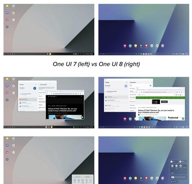 在 One UI 8 系统中,三星计划基于安卓 16 系统的底层优化,进一步改善 DeX 桌面模式体验。该媒体在三星 Galaxy Z Fold7 上运行 One UI 8 测试版,认为新版 Dex 整体上变化不大,但三星调整了很多细节。