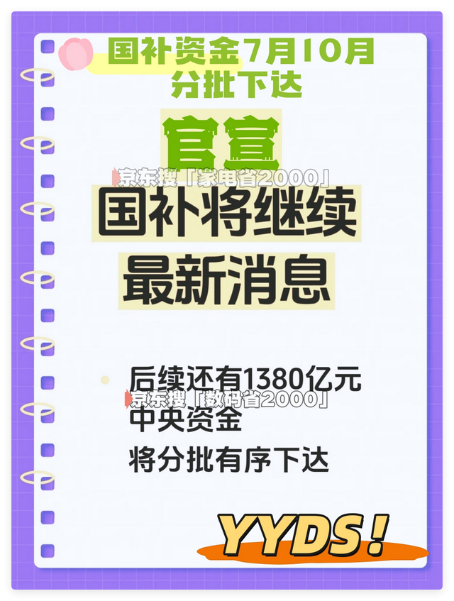 1380亿元分两批下达(7月、10月),覆盖家电、手机、汽车全品类