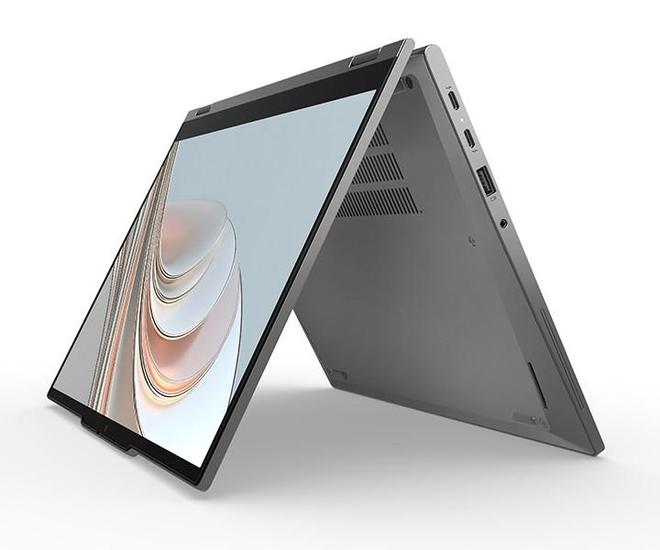 这款翻转本采用月神灰外观机身,内置 54.7Wh 电池,薄至 17.03mm、轻至 1.30kg,通过 12 项 MIL-STD-810H 军规测试,配备 32GB LPDDR5x-7467 内存和 1TB M.2 2242 PCIe 4.0 NVMe 固态硬盘。