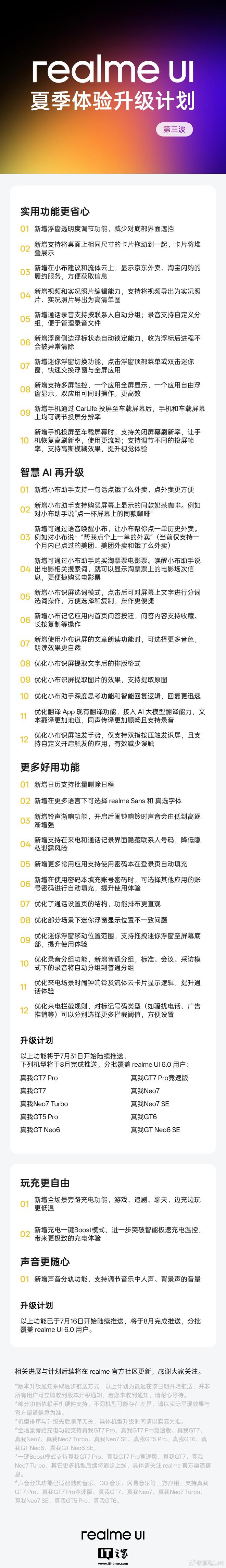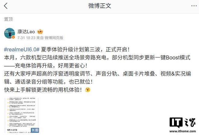 IT之家 8 月 3 日消息,realme UI 产品经理 @康达Leo 本周发布了 realme UI 夏季体验升级计划第三波,其中提到了部分新功能,包括多屏触控、全场景旁路充电、视频和实况照片编辑能力等。