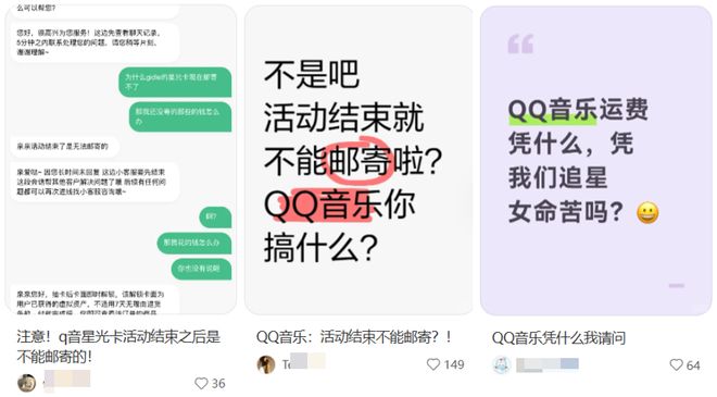 主要集中在邮费价格的合理性,以及活动时间过了以后小卡过期的机制。