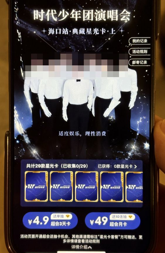 这种稀有度和随机性极大程度刺激着粉丝的消费,QQ 音乐再次将这种 “ 小卡 ” 跟会员挂钩,开超会送抽卡机会。