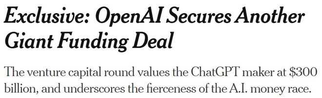 近日,OpenAI又获得了一笔巨额融资。据悉,OpenAI已提前数月筹集了83亿美元资金,这就导致它的估值直接达到3000亿美元,这是今年400亿美元融资计划的一部分。