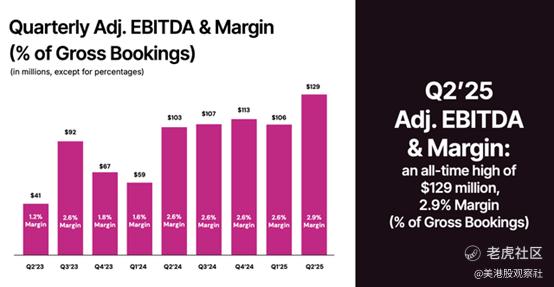 这得益于每趟行程激励支出的降低以及对运营支出增长的严格控制。调整后 EBITDA 占目标预订量的比例同比上升 30 个基点至 2.9%,而占营收的比例为 8.1%,同比提高 90 个基点。