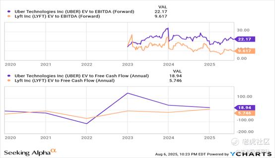 与优步相比, Lyft 的估值存在巨大折扣,尤其是在自由现金流方面。值得注意的是,在当今市场中,个位数的自由现金流倍数实属罕见。