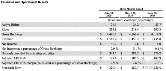 现在让我们更详细地分析 Lyft 最新的季度业绩。以下是第二季度财报摘要: