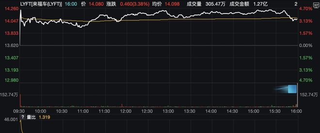 8月4日,百度和Lyft战略合作消息发布后,截至收盘,百度上涨1.75%,Lyft上涨3.38%。
