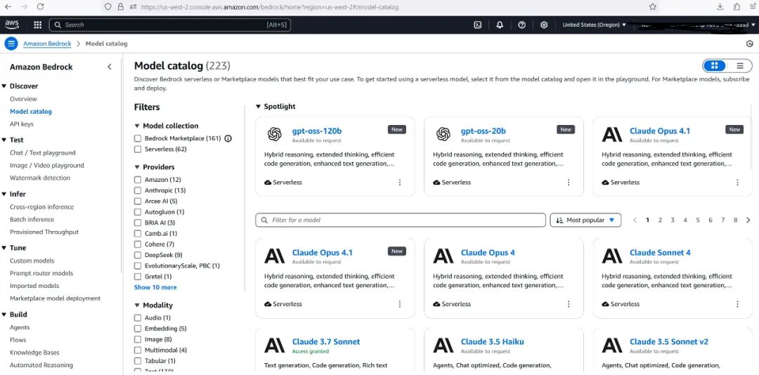 有了 OpenAI 开放权重模型以及 Anthropic 最新模型的加入,Amazon Bedrock 上完全托管的大模型总数达到了 223 款,而 Amazon SageMaker 上的开源大模型总数也达到了 185 款,为客户第一时间部署运行最新大模型提供了便捷渠道。