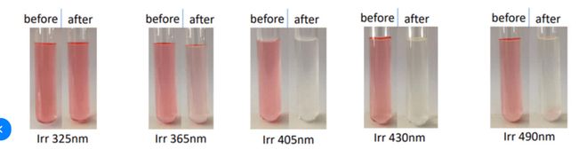 无色螺吡喃水溶液,在紫外线下会变为橙红色;而当它暴露在可见光下时,颜色又会变浅