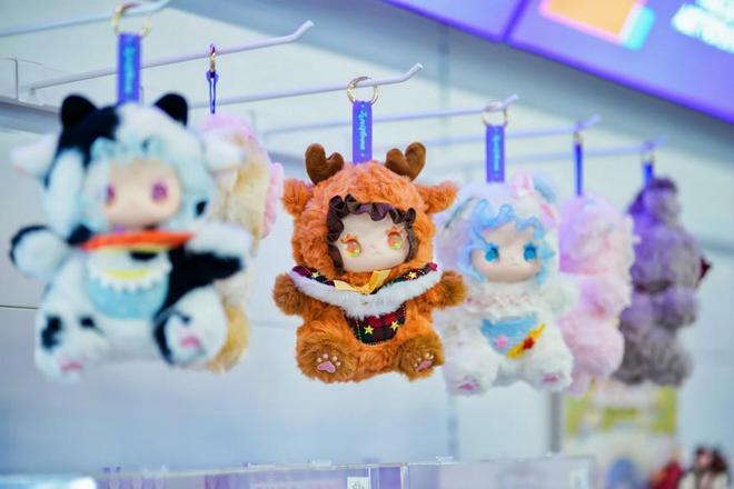 步入东莞漫博会潮玩中心,各式各样憨态可掬的潮玩映入眼帘,仿佛让人踏入如梦如幻的童话世界。