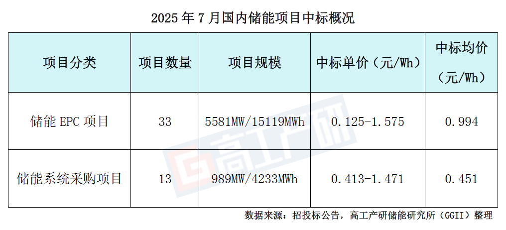 智通财经APP获悉,据GGII发布的《高工储能行业数据库》不完全统计,2025年7月国内共有46个储能项目EPC/系统公布中标结果,中标规模约19.35GWh,1-7月中标容量规模累计达189.48GWh。