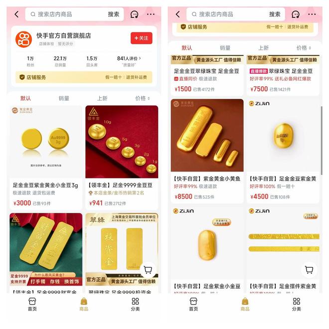 界面新闻在该店铺主页发现,目前店铺已上线数十款黄金饰品,其中多款商品还标注了“快手自营”,而店铺的运营主体成都品农科技有限公司是一家由快手100%控股的公司,这些信号是外界猜测快手要涉足自营电商的主要原因。