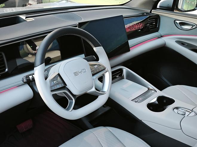 图源:电车通摄制海狮 06 提供两种动力总成,其中 DM-i 版本无需多言,第五代 DM 技术的省油能力早已深入人心,最低 3.5L/100km 的馈电油耗已经很强,而且还拥有最低 7.5s 的零百公里加速时间;EV 版本提供 65.28kWh 和 78.72kWh 两种容量的电池组,分别提供 520km 和 605km 两种 CLTC 纯电续航里程,按照每日通勤 30km 来计算的话,完全可以做到两周充电一次。