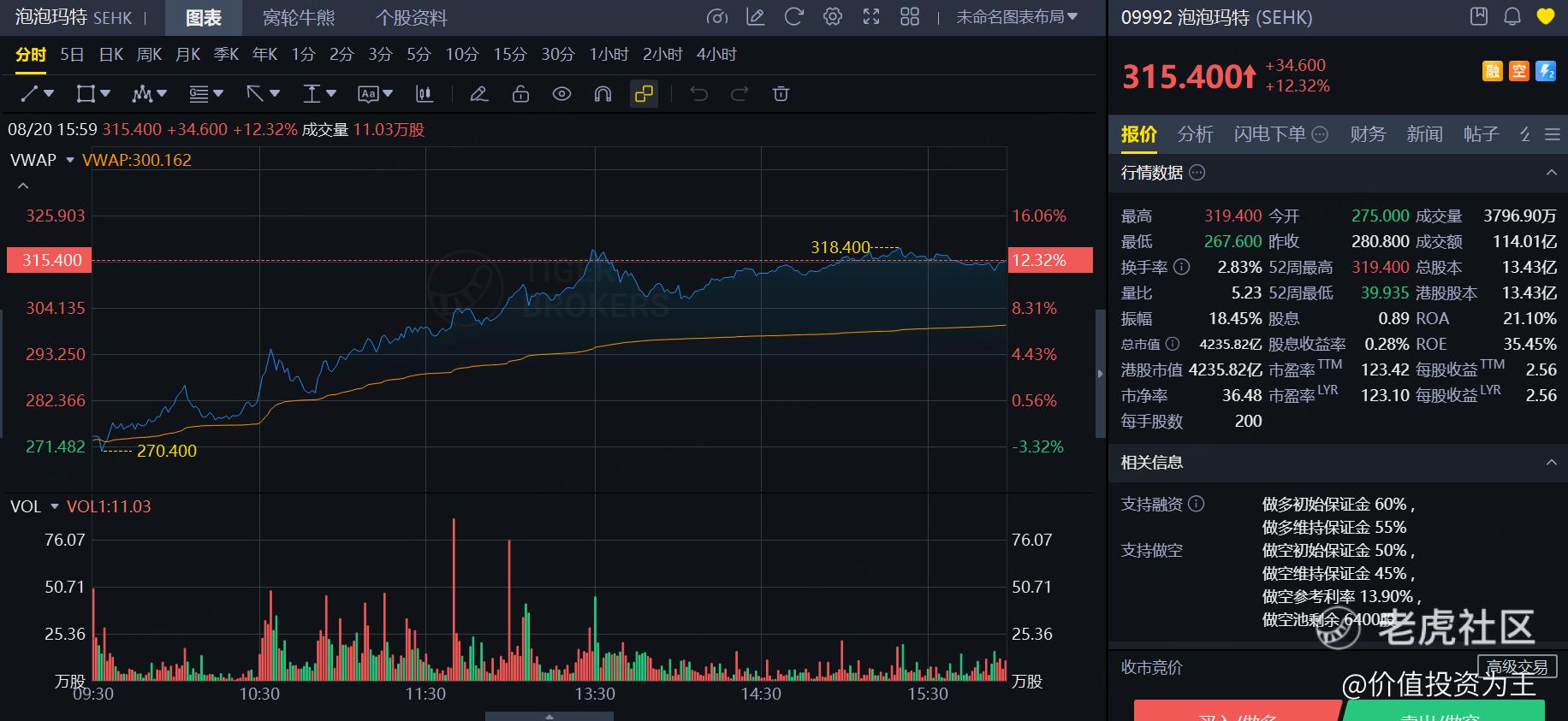 受此影响,泡泡玛特股价直线拉升,最终收涨12%,股价再创历史新高,市值突破4200亿港币!