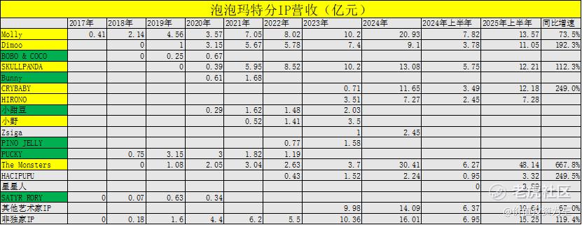 不过,从IP收入上看,爆火的其实不止LABUBU,老IP Molly上半年营收13.57亿,同比大增73.5%;CRYBABY营收12.18亿,同比暴增249%;HACIPUPU营收3.3亿,同比暴增249.5%;Dimoo营收11亿,同比大增192%;SKULLPANDA营收12.2亿,同比大增112%;新推出的星星人,上半年营收达到3.89亿,相当亮眼!