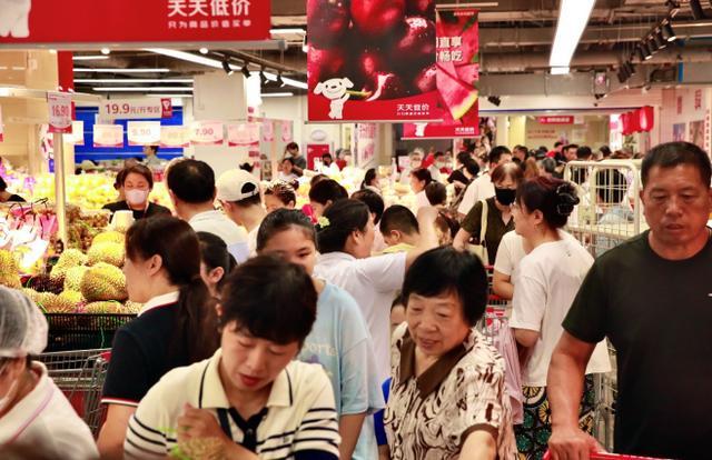 尽管人流如织,现场依然秩序井然。从涿州君悦广场门口到超市内部,清晰的指示标识与工作人员引导随处可见。“慢慢走,当心脚下”、“新鲜现做的肉蛋堡,欢迎品尝”、“产地直采的麒麟西瓜,1.99元一斤”......此起彼伏的声音,烟火气十足。