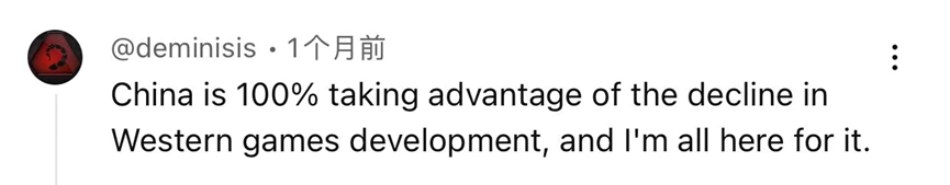 有外国网友表示,“中国正在充分利用西方游戏开发的衰退,我对此感到非常兴奋。”