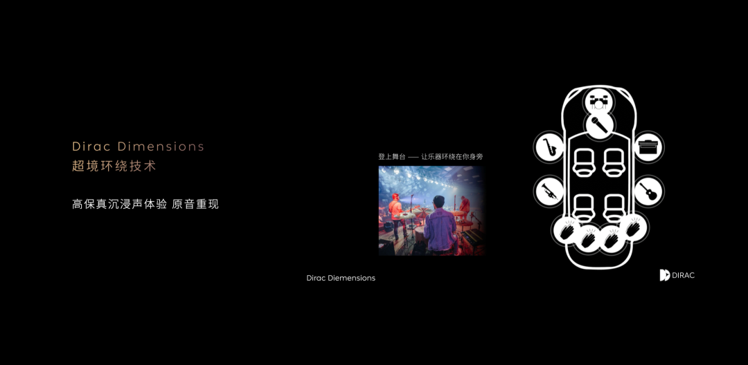全球首发“超境临场”虚拟声空间体验,不止是混响,更是一组前沿技术的合体。“超境临场”功能运用Dirac虚拟声场生成技术,结合最新研发的AI智能算法,可抽离原曲中的空间信息,并高质量地替换为目标空间的声学特征,能将顶级声学场所的空间体验带入座舱之中,实现突破物理空间的震撼听感。