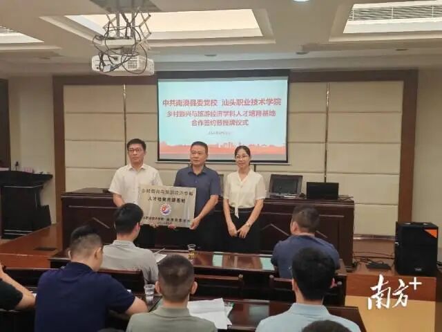 ●近日,汕头职业技术学院与南澳县委党校在南澳县委党校举行签约仪式,正式签署《战略合作协议》,共建“乡村振兴与旅游经济学科人才培育共建基地”。据悉,此次签约积极响应了广东实施百校联百县助力“百县千镇万村高质量发展工程”行动的号召。