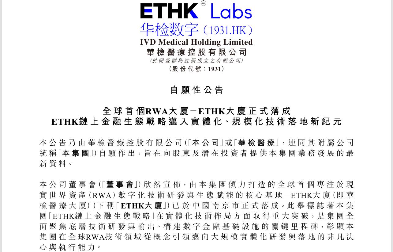 RWA并非新鲜概念,但其规模化落地始终面临技术基建与合规框架的双重挑战。华检医疗此次落成的ETHK大厦,正是破解这些难题的实体化答案。