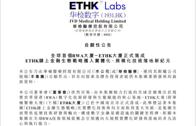 与此同时,华检医疗公布了新版企业标志,将品牌核心从“IVD”焕新为“ETHK Labs”,彰显其向“全球数字产业创新与链上金融基础设施赋能者”的战略转型。