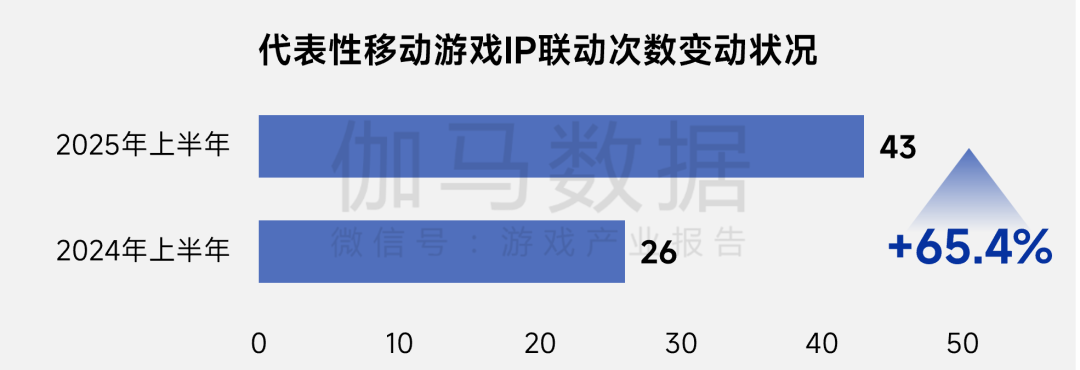 值得注意的是,IP的运用方式正变得更加多元:从数据看,2025年上半年,代表性移动游戏IP联动次数较去年同期增长65.4%,联动频率提高,也是产品在“直接改编”之外发掘出的新的高价值点。