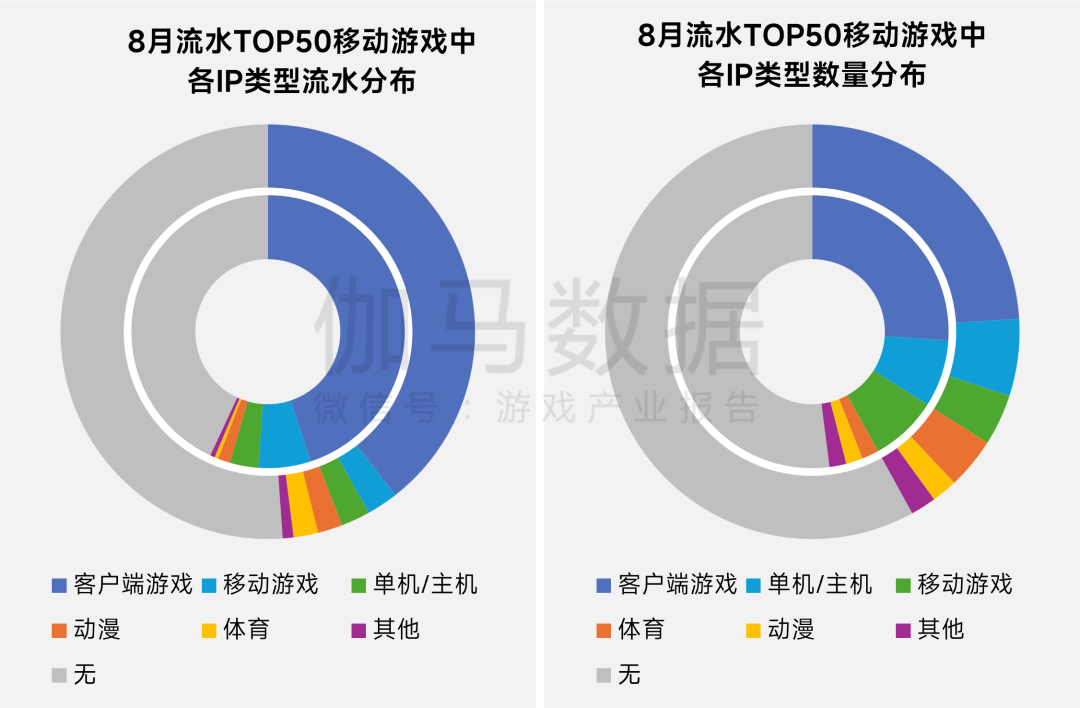 流水TOP50游戏IP分布:多种IP改编产品流水分额下降 原创IP(无IP)产品流水分额提升