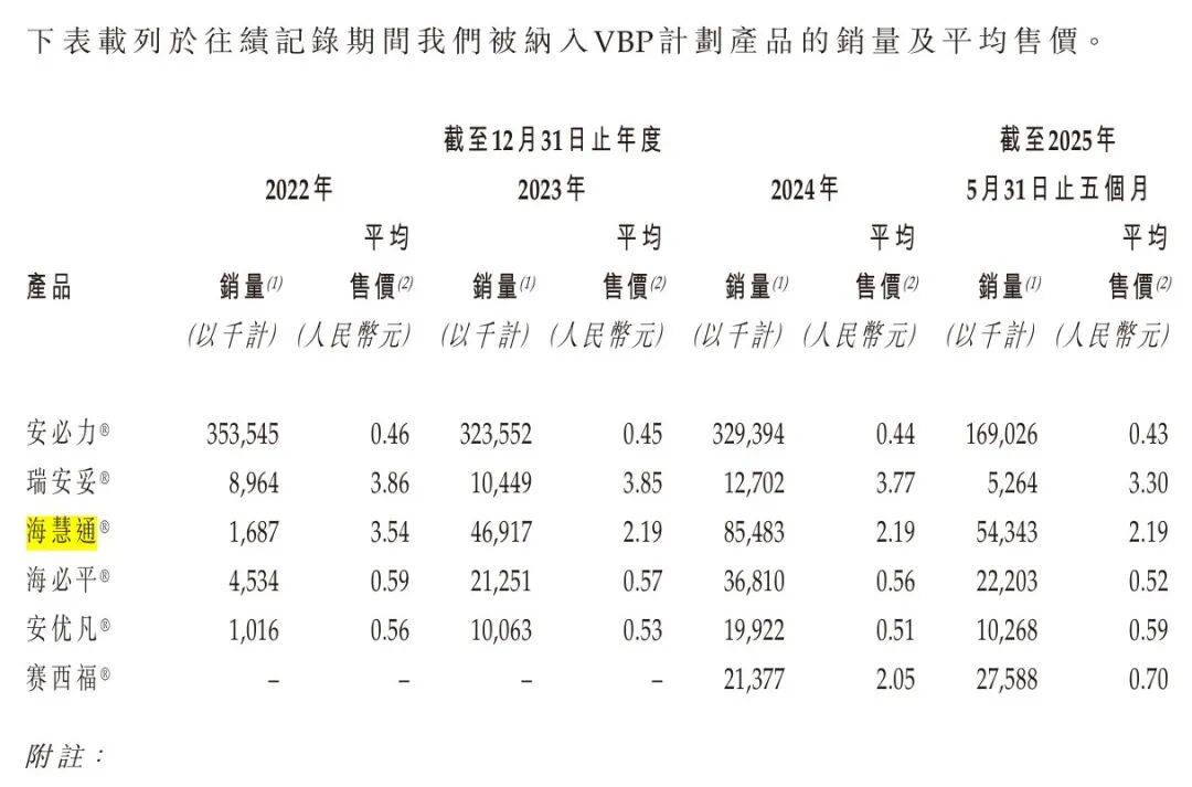 而另一核心产品海慧通的价格波动更具代表性,2022年其平均价格尚为3.54元,2023年因纳入第八批国家集采,价格直接跌至2.19元,且后续两年始终维持这一低价水平,未能实现回升。