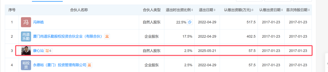 随着公司逐渐步入正轨,康心汕的核心地位逐渐确立,股权结构也迎来关键调整。