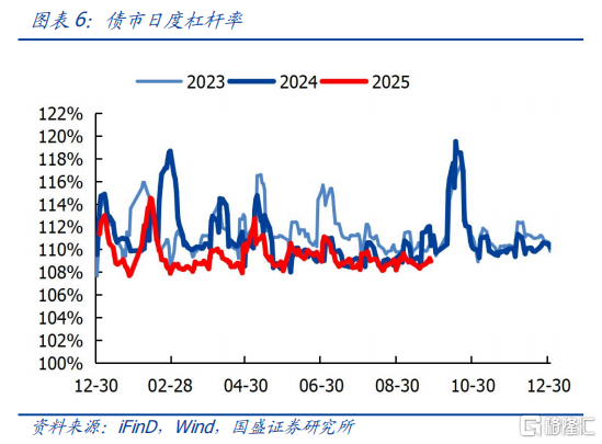 本周银行间杠杆率小幅上升。本周质押式回购交易量日均7.27万亿元(前值7.16万亿元),银行间市场杠杆率日均108.95%(前值108.47%)。